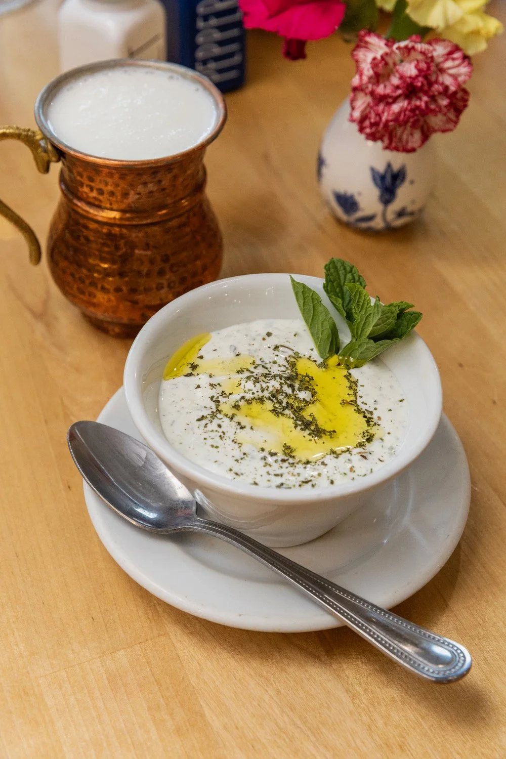 Cacik, á la Serife broccolini stalk and herbs in house-made garlic yogurt, naan* (V, GF) $5